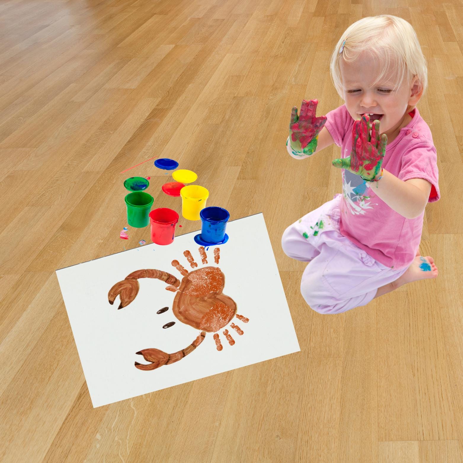 Simply paint your child's feet or hands with commercially available, safe finger or stamp paint and press them onto the printed poster – your personal keepsake is ready.