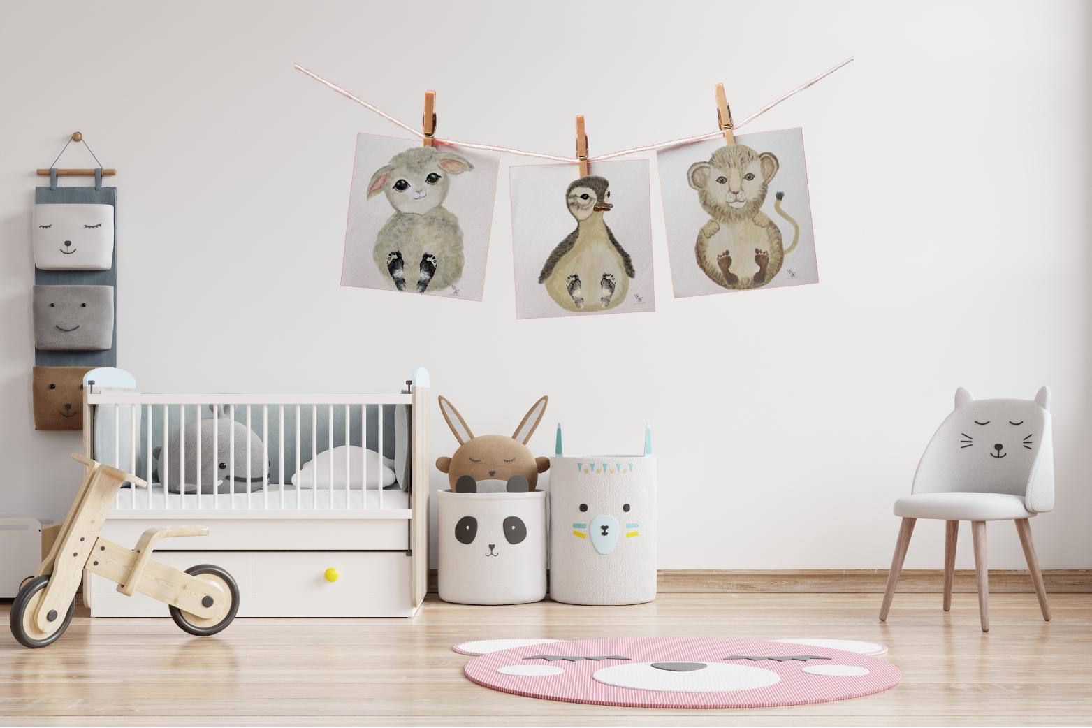 🎨 Hand-painted animal poster as a digital download – with space for baby footprints and handprints