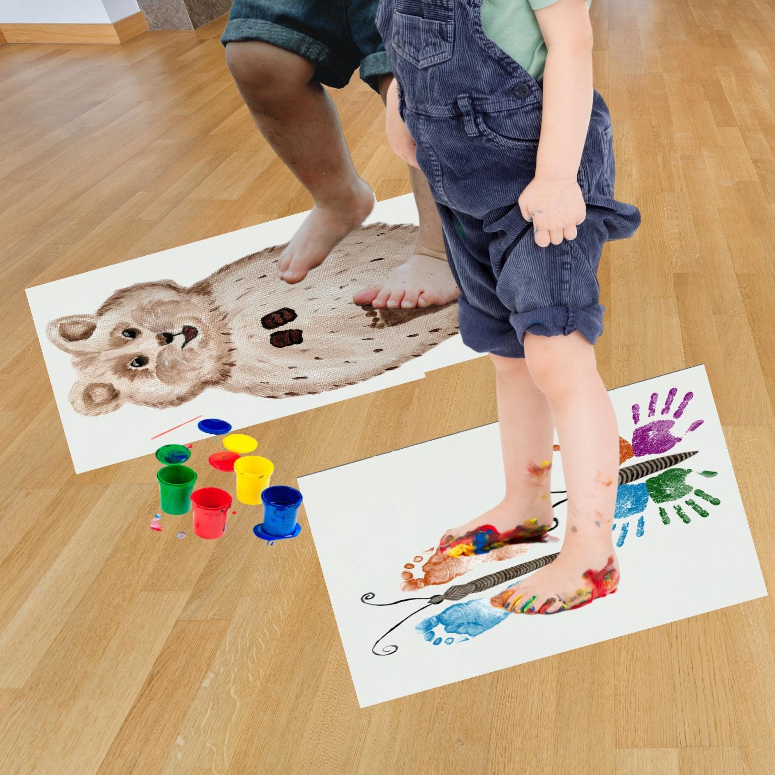 Simply paint your child's feet or hands with commercially available, safe finger or stamp paint and press them onto the printed poster – your personal keepsake is ready.
