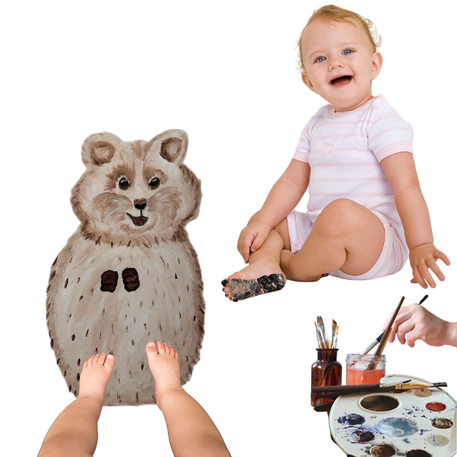 🎨 Hand-painted animal poster as a digital download – with space for baby footprints and handprints