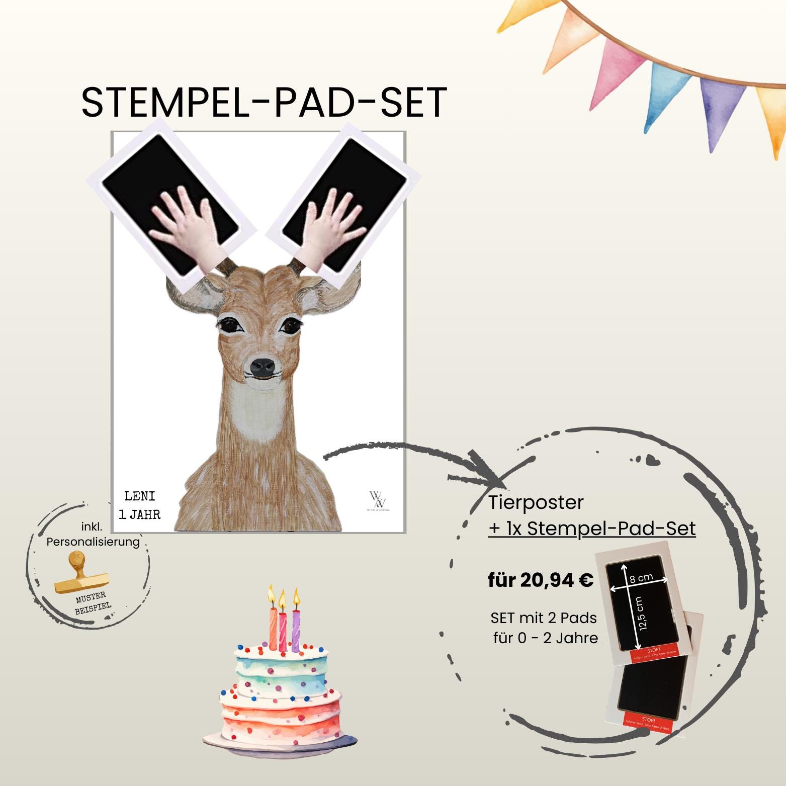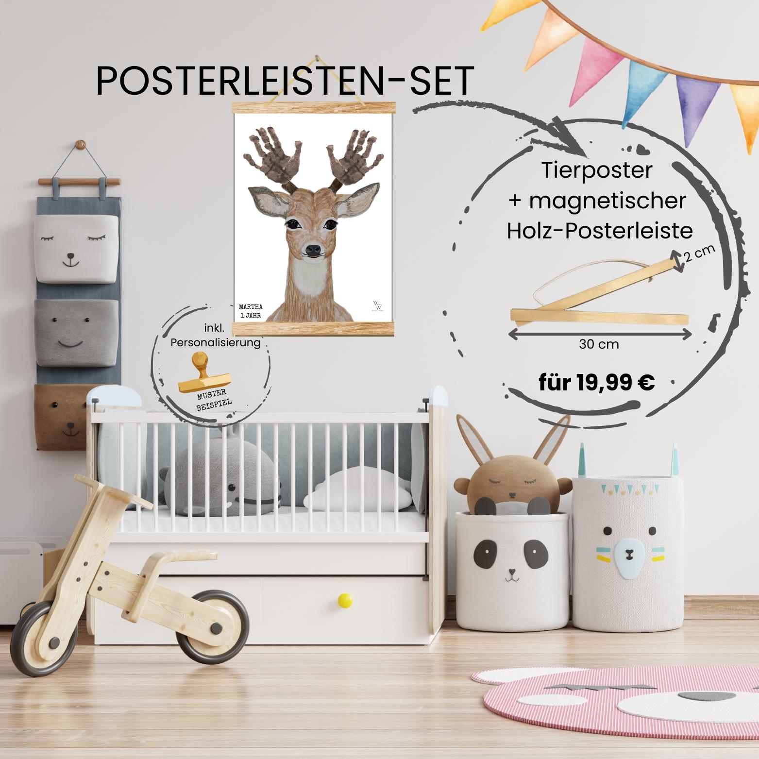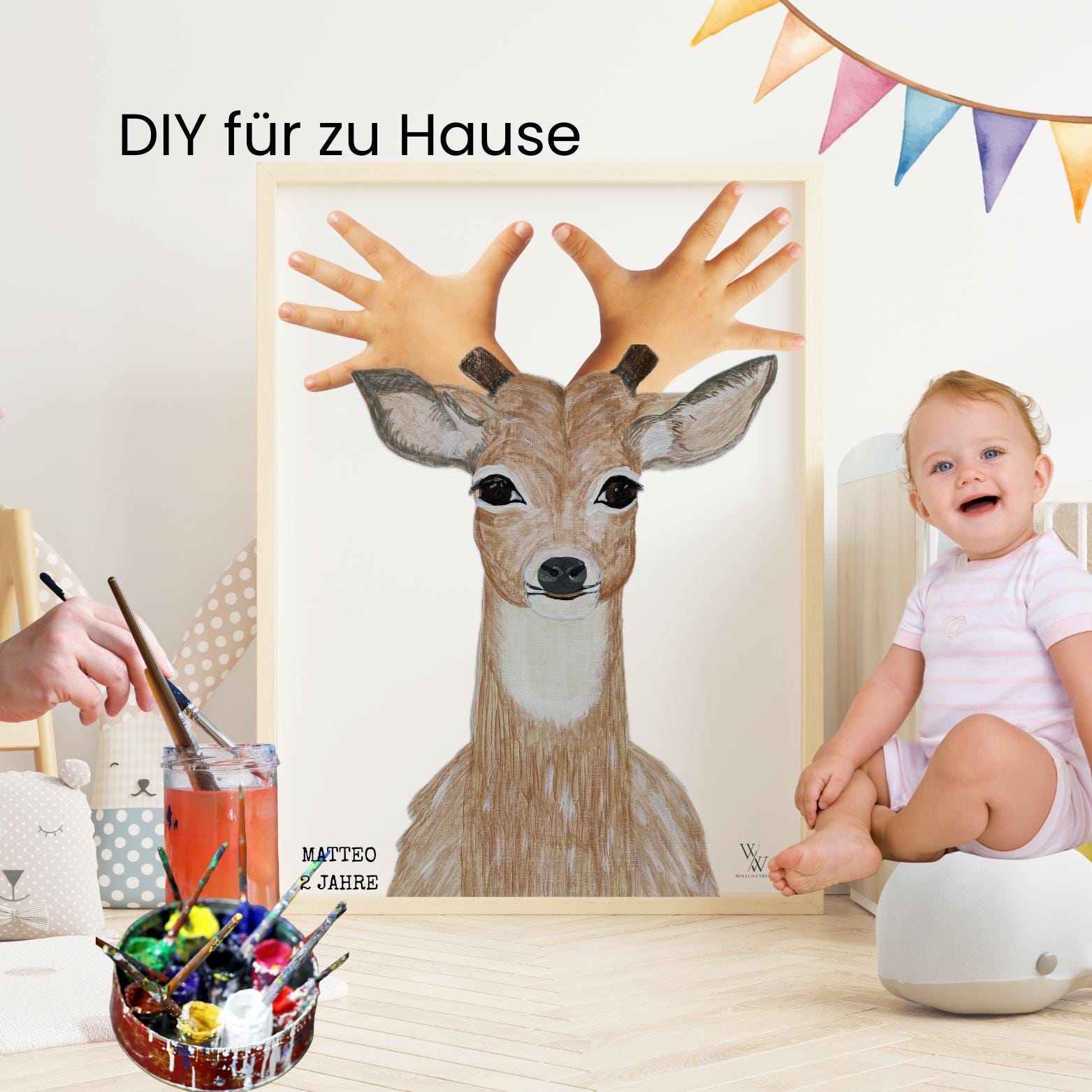 Deer | Hand-painted Animal Poster for Baby | Footprint and Handprint Set | Personalized Gift for Birth and Christening | Baby Poster A3 | Clean Touch Pad